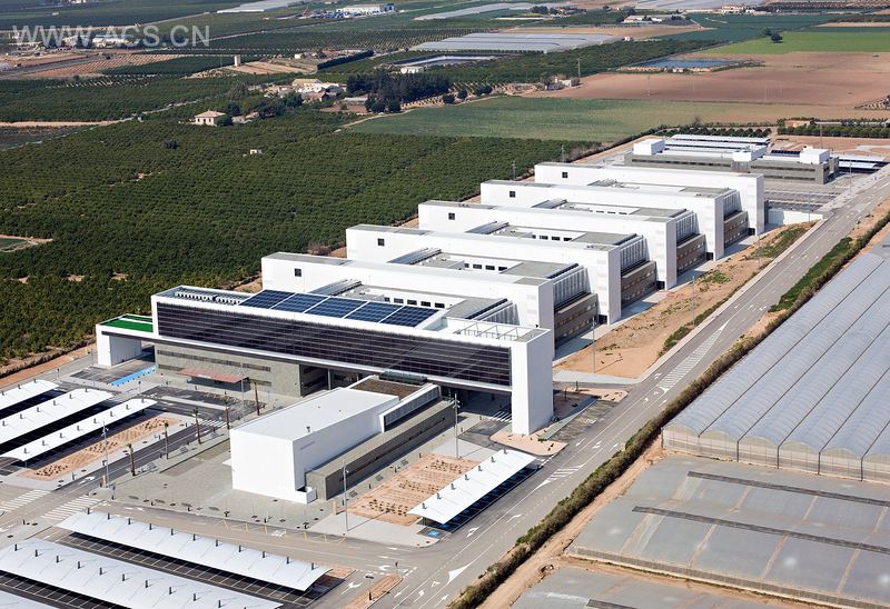 朝向南的外立面有两个主要创新:一个是用太阳能电池板设计的保护管理部门的百叶窗,另一个是120m长(到目前为止是欧洲最长的)的信息主导面板,穿透主墙,允许与大楼内部分享它的信息。