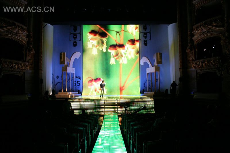 布景由大型LED屏幕、LED舞台地板以及通往歌剧院大厅的LED中心通道组成。巴可牌矩阵主屏幕重2000公斤,高9米,分辨率为24像素。多亏了赛博霍斯特品牌的变速引擎,让屏幕能够升起并展示出不同的歌手的形象。
