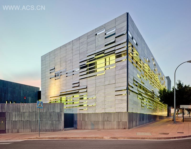 正面为双层大理石板条表皮,它们引入一种分散的自然光,从而照亮内部的空间,减少建筑能耗;作为一座基于可持续性标准而设计的建筑为环境可持续做出了贡献。