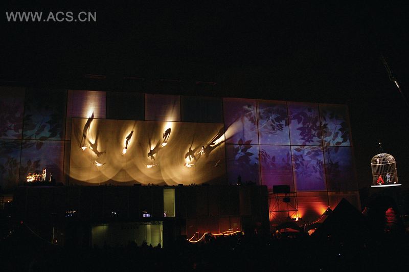 舞台内部环境是拟真和互动式的设计,时刻工厂将巨大的六瓣金属花投射在DJ阿兰·维内的音乐棚下方。户外空间部分,剧场建筑充当了屏幕,延伸了舞台空间。背景幕布和布景不仅只有一种,表演者利用互动式的屏幕作为他们表演的一部分,其中包括了在舞台之上的垂直舞蹈表演,在那儿,能看到舞者与屏幕之间直接的相互配合效果。