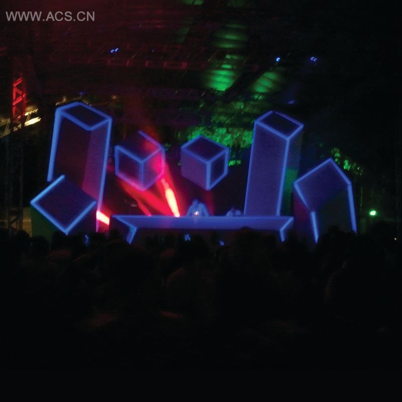 舞台花了4天时间来搭建,并根据由我们研发的WYSIWYG软件来切割木材。最后的舞台效果非常成功,布景一直是动态和彩色的状态,持续到次日的日出时分。