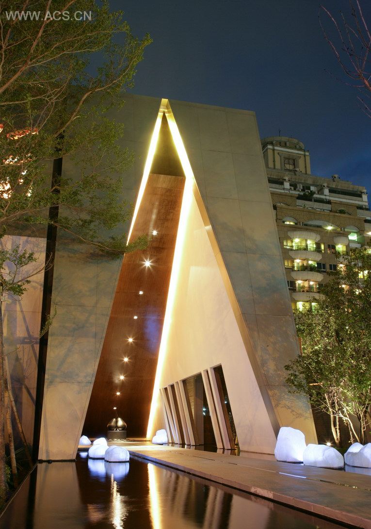 长虹虹顶的立面是非常抽象的三角几何造型,三角几何是一个沉稳但不失活泼的形状,室内空间跟随此几何形状呈现出内敛、沈稳且主动的气氛,三角形尖顶部份更有凝聚视觉焦点的效果,故此建筑造形和室内空间是相辅相成,互相提升的。