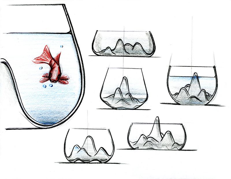 FISHSCAPE是对传统鱼缸的重新定义。它将鱼类的简单家园转变成漂亮的新景观——引进微型山脉。这个微型山脉是手工吹制的玻璃,经过土耳其设计师Gaia & Gino的加工而形成的。这个鱼缸能容纳2.5加仑的水。