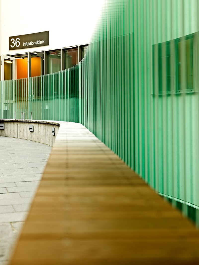瑞典马尔默斯科纳大学医院急救科和隔离部门的圆形建筑,旨在提供最佳的预防感染传播方法。这座建筑将成为医院引人注目的新地标。
