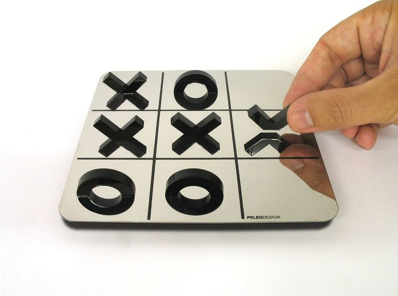 本案是会反射的一字棋。利用镜面的反射原理,将镜面当做游戏面板。半块的棋子在上面移动,就像是一颗颗完整的棋子一样。