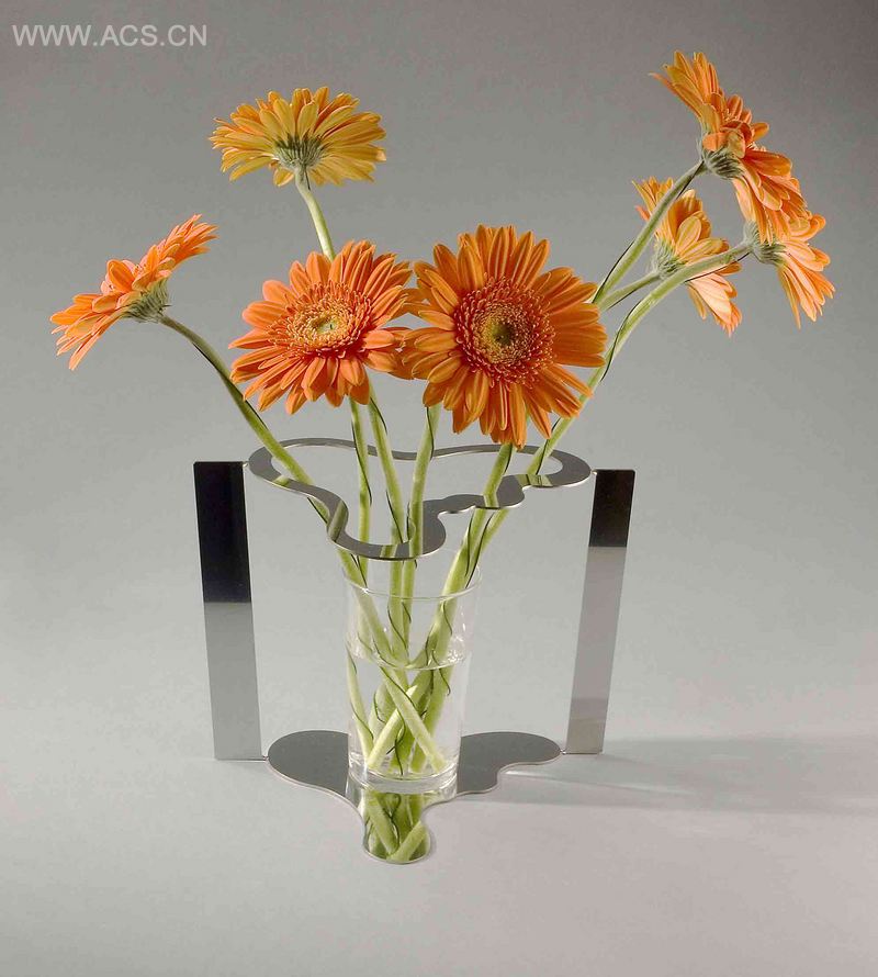 Flataalto花瓶有着和Savoy花瓶相似的轮廓线。根据轮廓线,设计师激光打造了一个单片的不锈钢圈。这个不锈钢圈在使用前还需要直立起立。在不锈钢圈中间放置一个水杯,就变成了荷兰大师经典设计的小型缩影。得益于不锈钢圈的流畅曲线,花束造型格外方便。