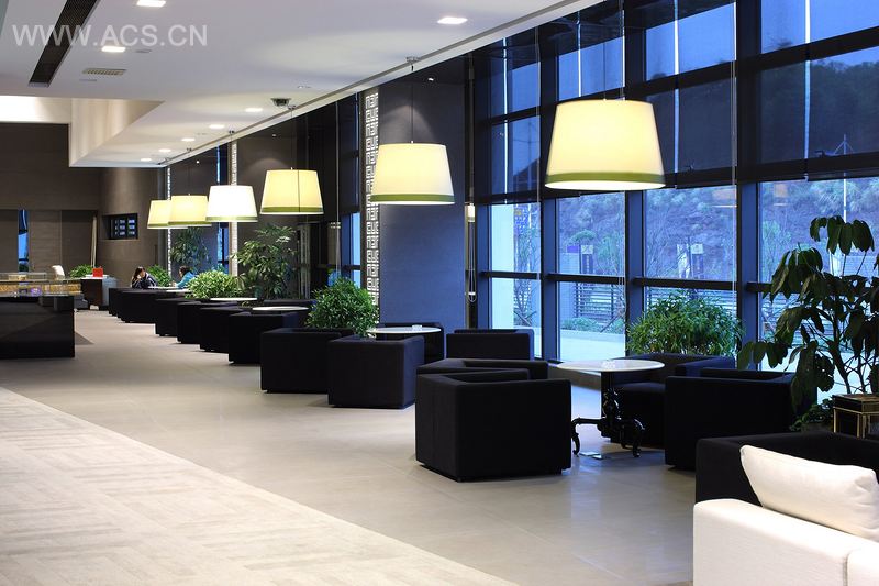 - 主要用材:米白色乳胶漆、黑色高亮光石材、贵族灰大理石、白色氟碳漆、黑色定制图案地毯、中国黑大理石图案、铝板烤漆、不锈钢、黑玻