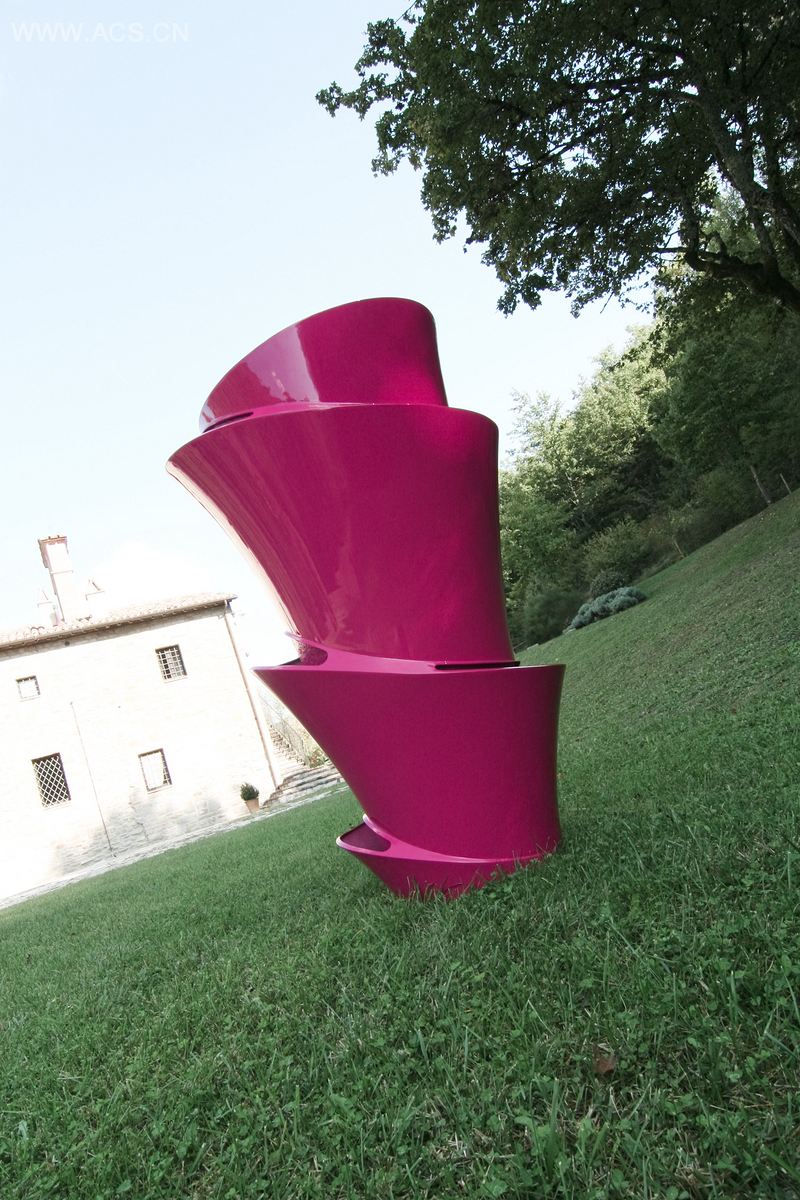 在最近一次重塑花园景观造型中,本案非常引人注目——展开的螺旋状垂直线条,中间种有植物,给人以绿色瀑布的视感错觉。这就是垂直体。垂直体的玻璃纤维材质上交错着光影,和周围环境融为一体。