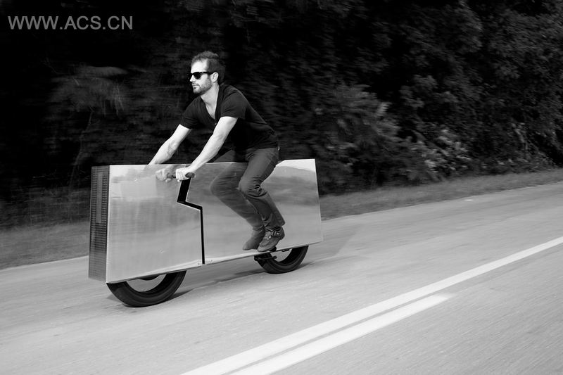 设计师Joey Ruiter让摩托车变得有趣起来,他重新定义了人们头脑中根深蒂固的摩托车形象。没有花哨的油漆,电动机,裸露的机械还有排气管子,更让人惊叹的是,摩托车反射性的外表让车手看上去像是骑着一个消失的运输工具,它的功率为1千瓦48伏电动机,持续续航能力大概在3个小时,90英里左右。此外,所有的仪表信息和运行参数,像是速度表和GPS等,都需要下载特定的Apps,最后显示在智能手机上。