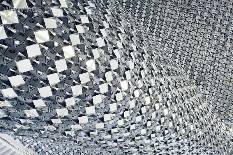 考虑到时装展览会呈现一些纺织品类和图案,工作室采用数量很多但不受限制的信用卡作为单元,组装成为立体纺织。超过一万六千片信用卡被使用,它们通过一个简单的逻辑组装,就像织布那样,采用简单重复但最快捷办法产出“布匹”。