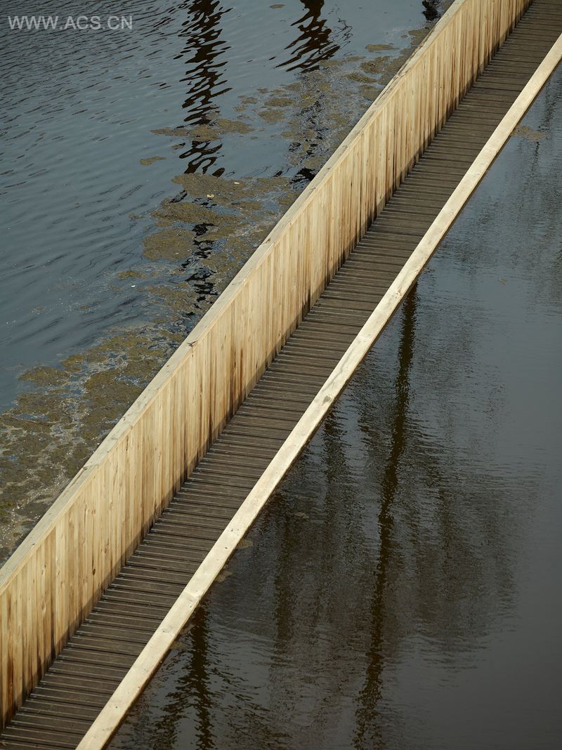 RO&AD的建筑师提出的解决方案是建造一座嵌在水面上的桥——摩西桥(Moses Bridge),它的名字来源于圣经中摩西分开红海的典故。桥体凹陷,略高于水面,从远处看,桥的形象消失在人们眼中。人们在桥上经过时,就好像是行走在神话里被劈开的水面,并且还完美的与周围的自然和历史景观相融,不显突兀。但实际上水流是连续的。