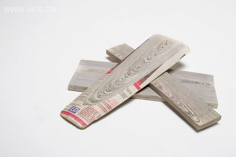 为了真正让旧报纸变成新的“木料”,设计师从已存的、高效回收的报纸中取材。设计师认为,能把废弃物重新引入到循环利用中将是个很好的做法。因此他们用胶水把报纸一张张叠粘在一起做成新的“木材”这样一来就避免了难降解和回收的溶剂和其他化学成分的使用。这样不仅能将这些废旧物循环利用,还能把“报纸木材”产品放到回收站回收利用,当然设计师希望这些产品能为人们喜欢和珍藏。