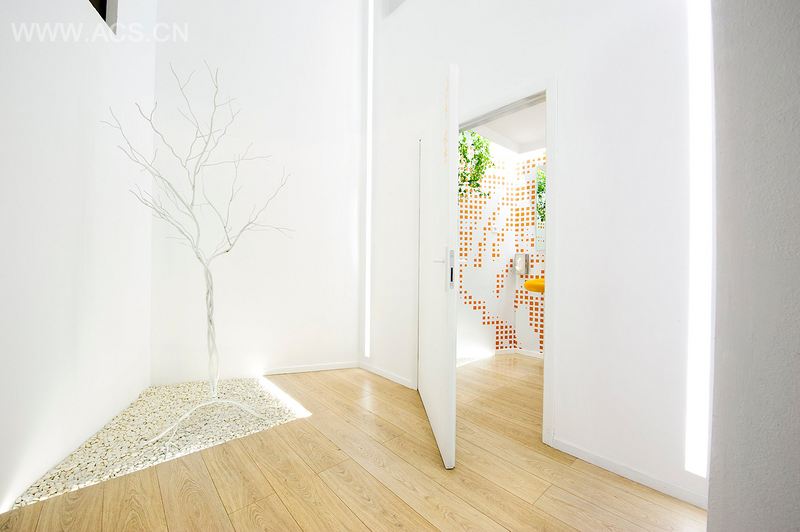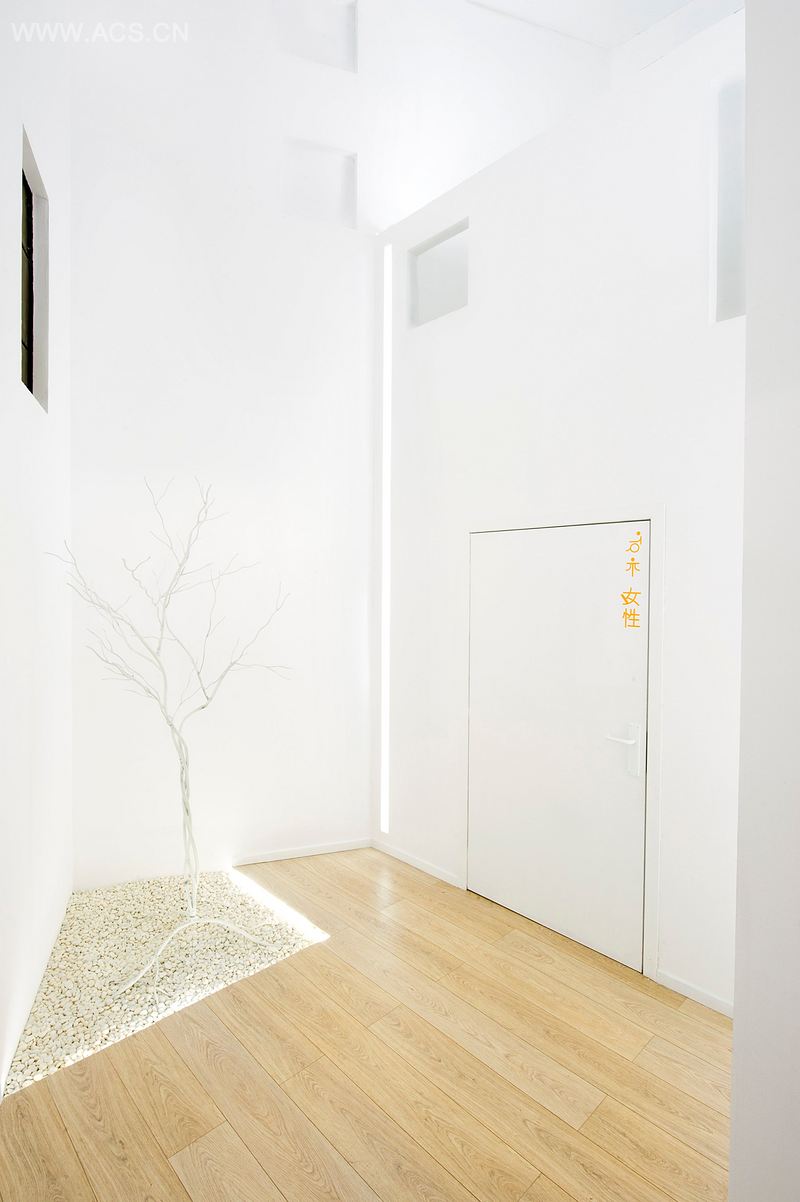 这个商业空间的内部公厕面积只有17平方米,但由于设计师的巧妙设计,迎面就会给人带来一种不可思议的白色静谧感。