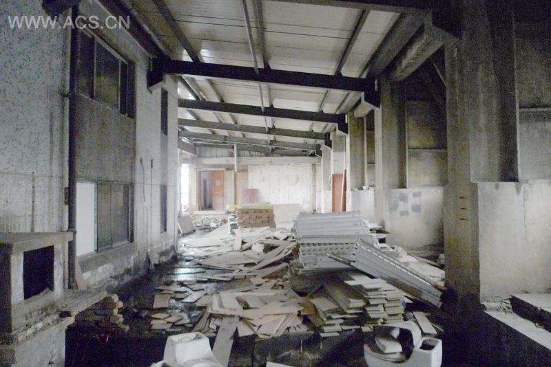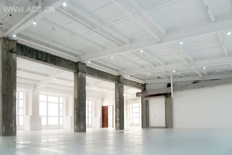 为了彰显正统建筑语言与建筑“方言”之间的互动,并行与辩证关系,设计在改造中保留了一系列能够揭示其原有搭建的“非职业”的设计元素。比如通过用白色喷漆处理钢构架屋顶,原有锈蚀的混凝土梁柱依然被作为结构核心而完全保留;房间采用架空的白色地胶板,五个镂空设计的地下橱窗玻璃镶嵌其中,展现了原有粗糙倾斜的排水屋面;从屋顶到仓库,从废弃到重新利用,疏散门的雨棚和粗糙的马赛克墙暗示着这片空间定义的变迁。