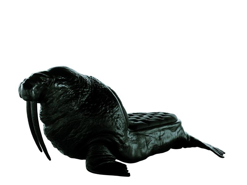 在整个藏品系列中,这是首件设计为躺椅的作品。它完美表现了动物从一侧到另一侧的整体造型。海象的背部被巧妙地设计为躺椅,与动物的造型天衣无缝地融合在一起。这一点成就了作品的独特性。