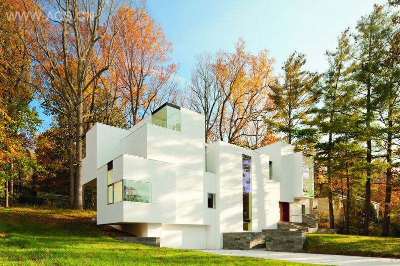 NaCl在设计上打破了人们对传统水平住宅的固定构思模式,以全新的视角向人们展示了建筑独特的外观结构,造型十分美丽。该建筑通过模糊建筑的空间布局结构,从而挖掘出明确且极不规则的建筑风格。粗糙不完美的建筑外观容易让人联想到矿物质岩自然的等容线形式。