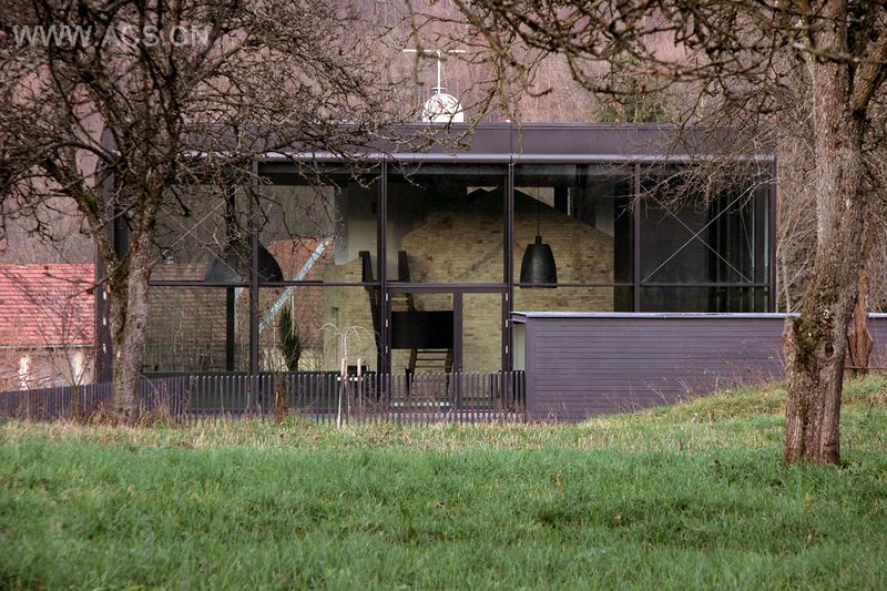 这个住宅的主人是一个银行家及书籍收藏家,家里共有四位家庭成员。住宅所在的场地具有很悠久的历史,曾经坐落了一个中世纪的火炮铸造厂,原住宅的年份也很长。所以在整个项目的开发设计中,为了尽可能多地保留原本建筑的风韵,设计师在房屋的外面设置了一层玻璃外墙,谨慎地将住宅包裹保护起来。