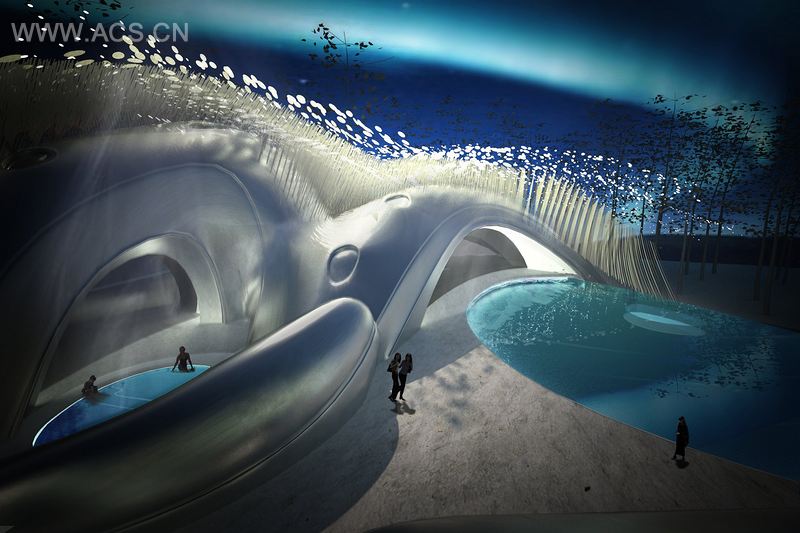 建筑设计和构造随时间的演进及技术的进步,希望能提出对新的建筑形式和空间功能的全面挑战。让使用者能拥抱原始的欲望,沉浸在神秘的幻想,也反映到未来的空间方式。主要概念是延伸历史故事;曙光女神(极光)在当地传奇性的象征,并增强了和自然现象的对话,让身历其境着者有着天人合一的感受。