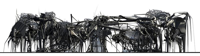 我早期的研究基于昆虫和植物的形态学和行为学。通过一系列的实验和自发组合,这个工作演变成一个领域,一个包括了结构、网眼和雕塑元素的网络。