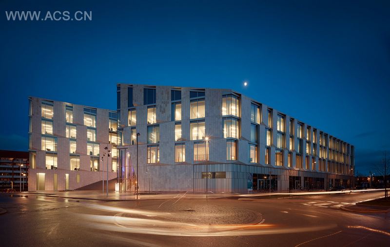 KPMG办公司位于哥本哈根弗莱德里克堡市的高端地区,设计要融于到周围环境中。设计师在考虑到其体量的同时,优雅地调整以适应其周边建筑。三叶草的形状以及浅色天然石块的立面柔和地融于到周围办公及住宅建筑中。