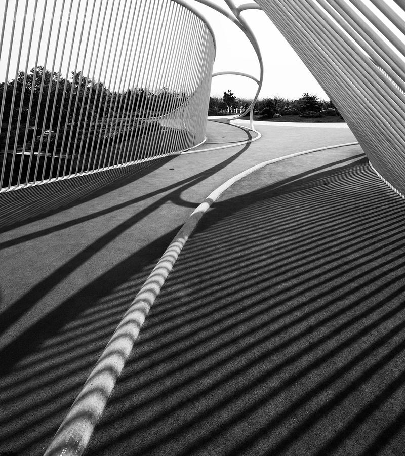 沿着海岸线,该公园的主要特点是树龄达50年的南欧黑松森林。本案设计的挑战在于最大限度降低建筑对于自然环境的影响。扭曲的形状旨在让这一45米厂的桥融于到自然环境中去,同时在城市及海滩公园间建立联系。