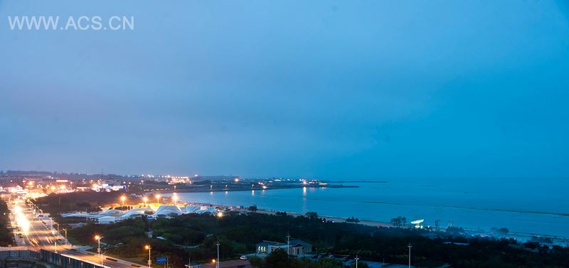 日照游客中心位于华东地区日照市2千米长的山海天海滩公园北部。游客中心毗邻一个广场,在旺季能吸引大量的游客。游客中心共有两层。为了很好地融于自然环境中,位于地表的建筑面积尽可能地被减小,同时在地下的那部分建筑,则具备各种功能,例如商店、电影院、餐厅、休闲设施、公共展厅等。游人大部分从广场东面进入,通过三层阶梯进入建筑或是四条不同的小径通向海边。
