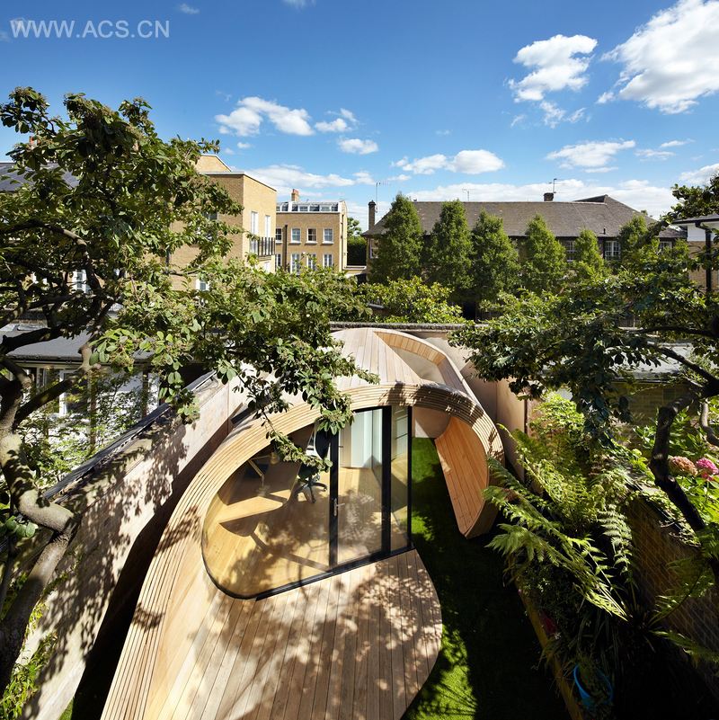 这个项目是经过建筑师,结构工程师和承建商通力合作完成。轻质的结构,由两个钢环梁固定成型,木条及胶合板表皮组成最小限度的垫式基础。该项目大部分都是预制的,以减少材料的使用量。