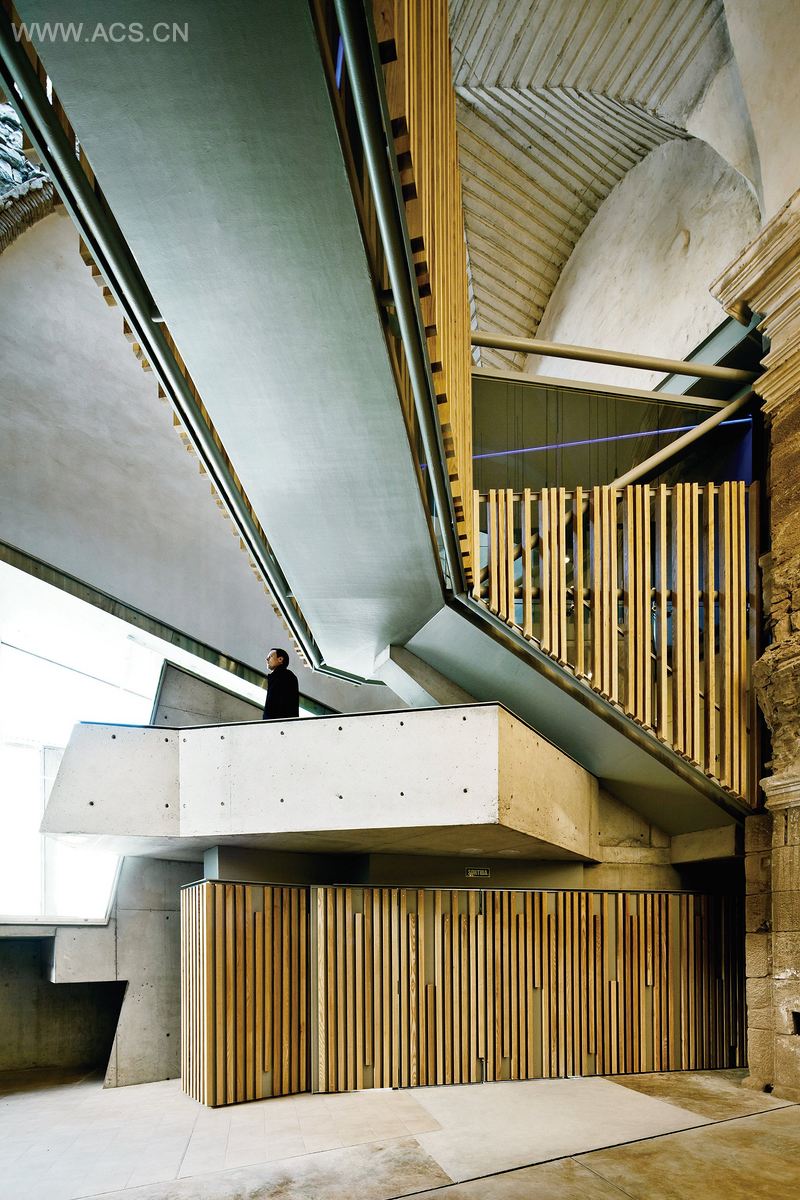 置在了教堂之外,以保持整个中殿空间的完整性。此外,新添的楼梯及坡道形成了一种不寻常的循环路线,产生了令人惊艳的视觉效果。