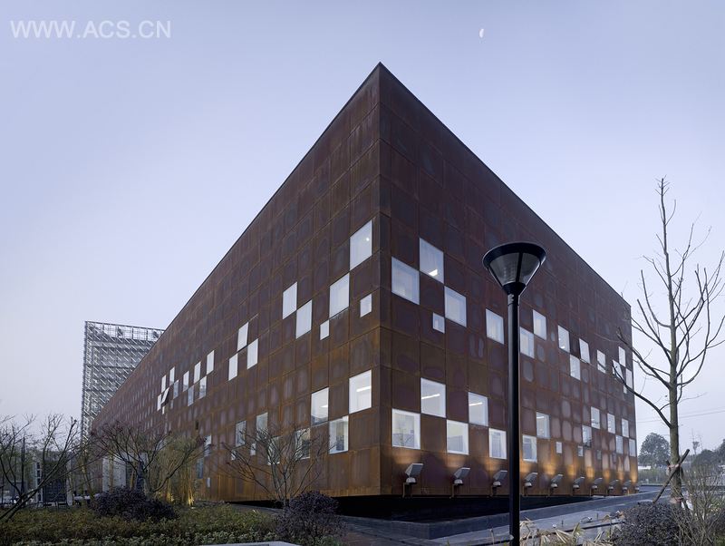 北辰长沙三角洲项目是一个占地一平方公里,建设量超过五百万平方米的大型城市开发项目,位于当地著名的湘江以东和浏阳河以南一片平坦的区域,它的实施将极大地改变长沙城市北部的面貌并影响到未来长沙城市的发展格局。北辰长沙三角洲项目展示中心是这一宏伟城市发展计划中第一个建成的项目,用于展示项目实施的社会与经济意义,记录项目的发展过程并满足其部分物业对外销售的商业目标。展示中心通过外部倾斜的几何关系与内部正交格构,半透明遮阳格扇媒体墙和锈蚀耐候钢板的运用,强化了空间和材料语言之间的形态并置和对比,表达了其内在的真实性和复杂性,建筑体验自此变得更有乐趣和充满遐思。