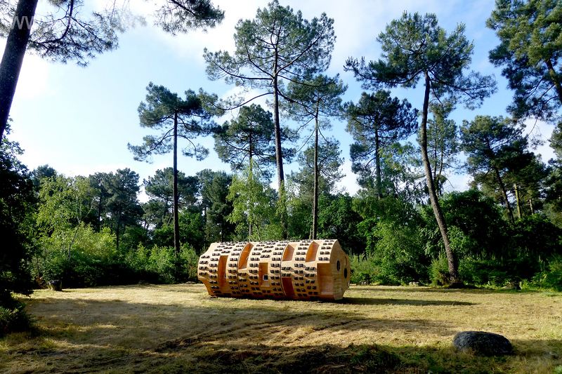 Le Tronc Creux呈现树干的组合造型,像动物们的天然庇护地,又像垃圾压缩器。空间蜿蜒曲折,可容纳9人安睡。就像是在山上的一块避难地,那里没有电灯,没有自来水,陪伴左右的只有家人和朋友。