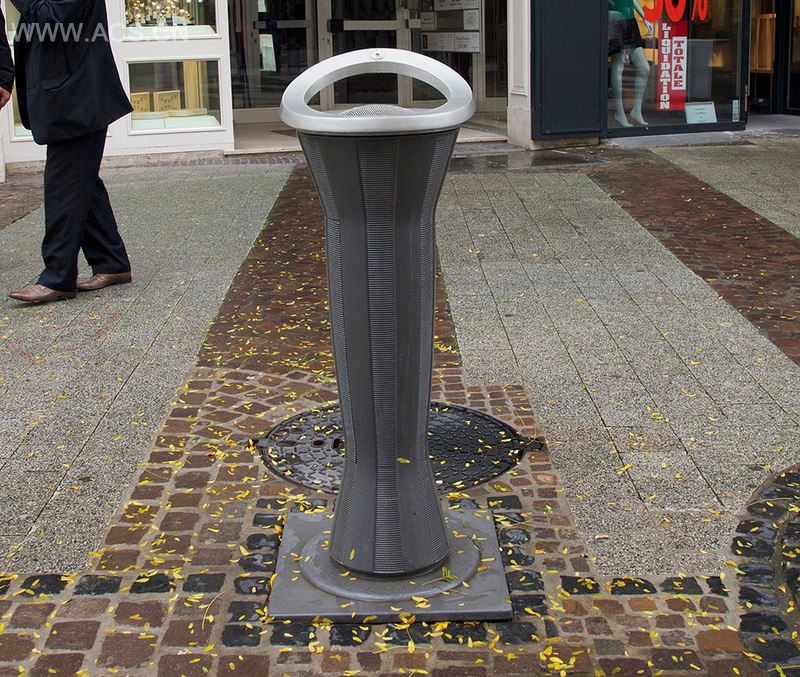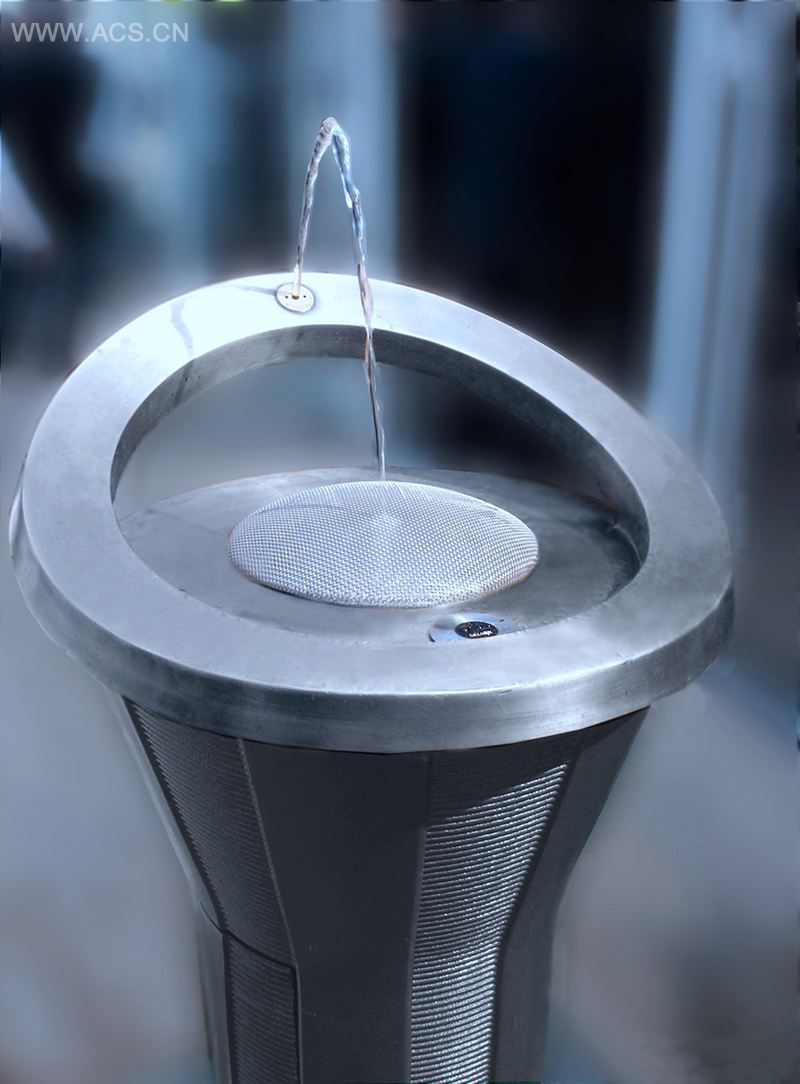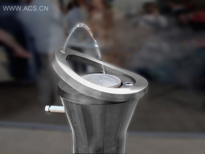 设置O claire饮水喷头,巴黎市民得以找到在大街上放心享用饮用水的乐趣。它依据人类工效学进行设计,水流从弯曲的圆环内喷出,饮水者可手握圆环以稳定姿势。圆环由铝合金材料制成,易于维护。