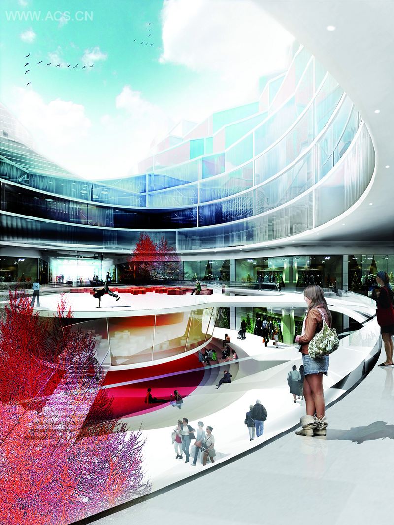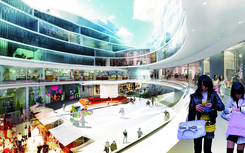 一系列的街道和广场在该项目的基址中形成,它们在这片土地上流畅地延展开来。在巴黎大道或悉尼大道上形成了各种广场,人们可以沿着室内街道漫步,也可以穿过一系列相互连接的室内广场。沿着这条路线行走可以到达主要的购物街道,它强调了商铺的位置,超市在一边,而百货公司在另一边。