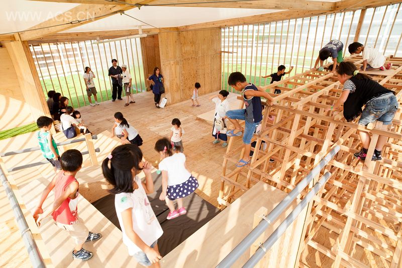 Korogaru馆的所在地是一座圆形花园,拥有温暖的阳光、芬芳的泥土和清新的空气,还有莺歌鸟语萦绕耳边。Korogaru馆的建立,意在鼓励孩子们走出多媒体室,去感受大自然的亲切抚摸。馆的内外界线被模糊化,孩子们可以自由进出。各种游玩设备设计新颖,富有启发性,利于寓教于乐。