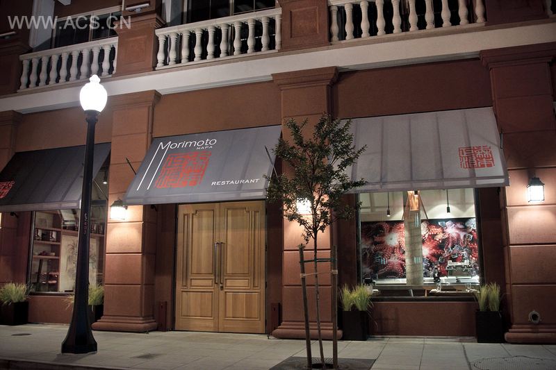 这家餐厅的设计是为加州纳帕的名人铁厨师森本正治,需要平衡一系列截然不同的文化影响。首先,它似乎适合来庆祝纳帕谷当地种植葡萄酿酒的传统。它也需要承认日本的饮食和文化,但是以一种微妙的方式,很少直接引用日本意象或设计。和这些食物一样,餐厅的形式和功能是一种文化和艺术影响的新混合,结合日本的简单风格与加州当地纹理。