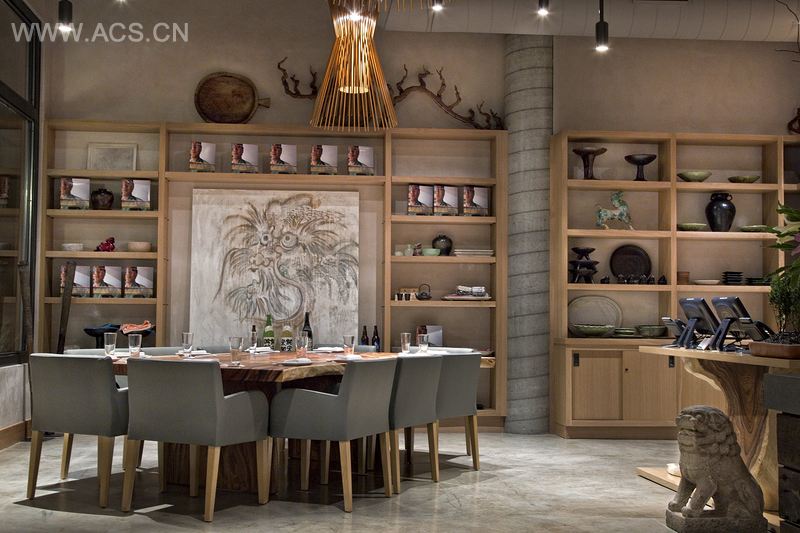 农业的另一个象征是风化木如人们看到的遍布纳帕乡村的旧谷仓,以及在家里和农场之外看到的大量柴火。为了反映这一点,一堆堆的再生木材都变成了桌案和分隔墙,当他们升向天花板时变得自由浮动。在包房里,浮木梁成为一件墙壁艺术,反映了堆放的木材和乡村家具随处可见。除了实际的再生木材,混凝土元素也刻上了木纹纹理,形成一个更温暖更自然的氛围。