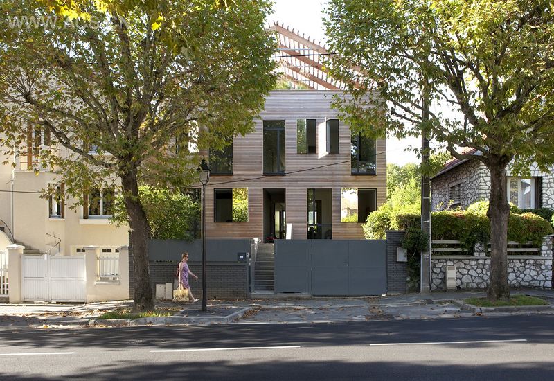 新项目设置在安东尼社区,也是一个绝佳的建筑范例:建筑,无论是异构和同构,都受制于过时的分区法规。因为城市情况以及尤里奇+塔哈德建筑师事务所希望继续完善其木质结构的研究,再加上安全许可证的延迟,使得他们提出了这样一种建设系统类型。这种类型在市区还没有出现,而主要是在人口稀疏区保留着独立住宅。非常典型的城市规则和现场环境都启发人使用该模板,这对该项目来说是真正的资产。