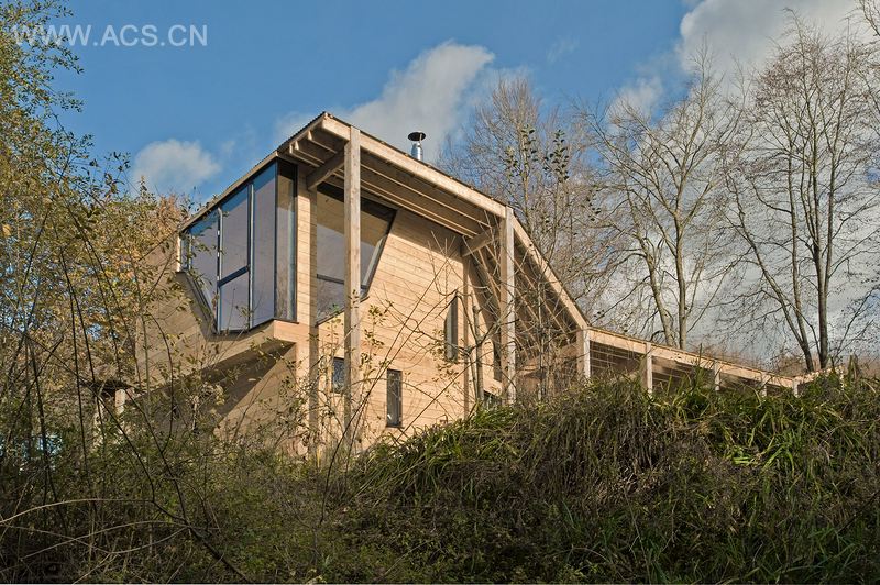 胡克公园的“看守人住宅”是真正的地面创新。世界最杰出的建筑学校“建筑协会”委托“无形工作室”将一个学生概念设计开发成一个典型的低成本的木制示范建筑,要求只使用在场址上种植和砍伐的木材,并保持场址的绿化状态。