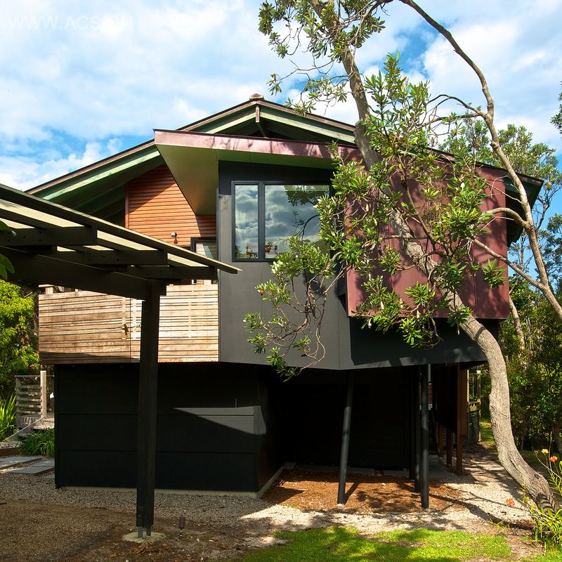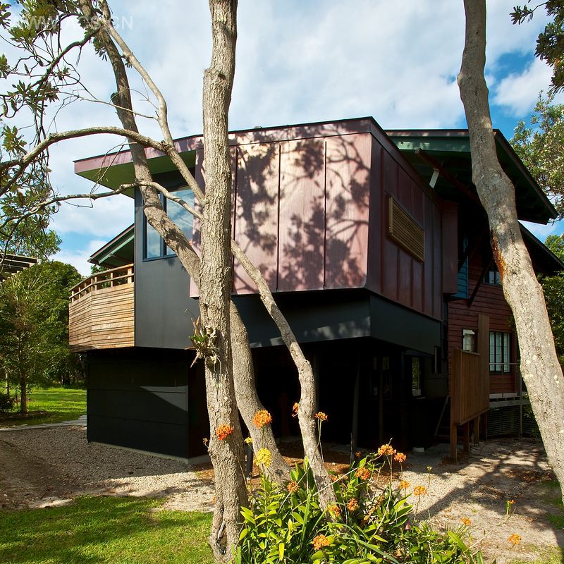 藤壶是一个紧凑的建筑物,在一个现有的住宅上扩建而成。该住宅的规划是为住户睡觉、沐浴、写作和坐在冬日的阳光下提供良好的空间。该项目旨在:在有限的构建能力约束下,为客户提供最大限度的体验。要让人有种露营或是停泊在一艘游艇舱里的感觉,项目需要住户的积极参与,以打开、关闭和调整内置元素来控制灯光、私密性、存储和通风。一个有着隐蔽照明的内置床位于空间中心,周围精心安排着松木包装的存储柜、书桌空间和抬头可见的风景。包装材料下隐藏着一条通往套房的秘密通道,套房完全置于光亮的马赛克瓷砖上,在上面倾斜的玻璃板下显得非常敞亮。总的说来,面板的材料包括铜包层、玻璃、松木胶合板、澳大利亚柏树。结果,进行小型扩建形成的度假屋为客人建造了一个用作睡觉和生活的额外私人空间,该空间坐落在扭曲的不锈钢柱上,在内部与外部之间的强烈关系下突显出来。