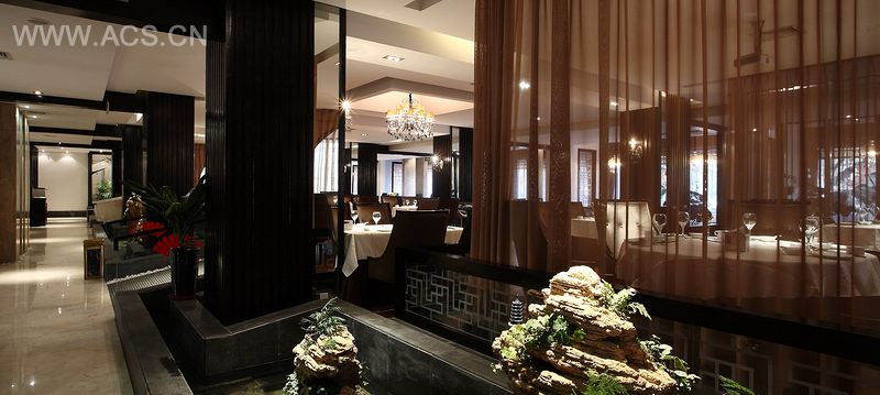 在提取粉墙黛瓦的色调基础上,加入现代时尚的元素,无彩色加驼色米色系列使得清雅的空间多了分亲切与现代感,家具没有采用传统的官帽椅而是简约的现代家具,从色彩关系与造型与儒雅的情节相呼应。使得传统与现代形成一种情感的交融,客人在此空间就餐别有一番感受。