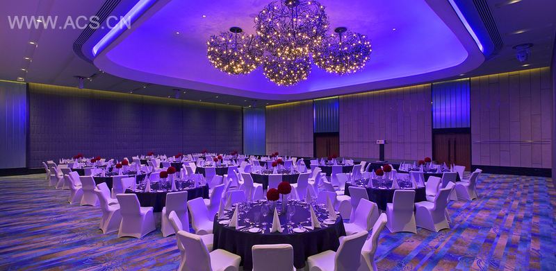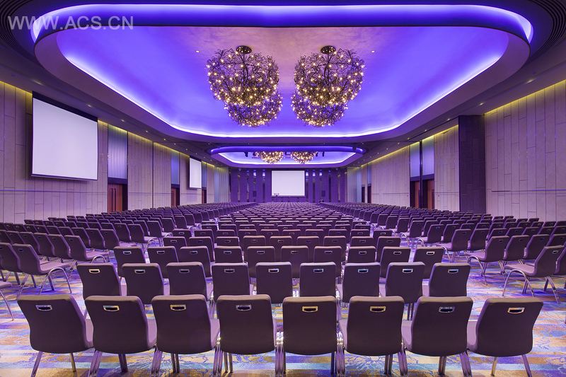 这是目前世界上最大的一间雅乐轩酒店,大型宴会厅设计灵感来自于在公园漫步。超大的吊灯与地毯上木槿花叶的图案相得益彰。玻璃砖和墙面上回收利用的木饰板营造出现代的触感。