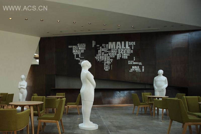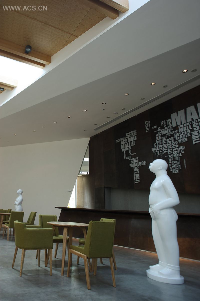 通过严谨的几何线条有效划分出空间关系。用简单直接的方式,高度概括复杂的需求关系。用当地民间艺术折纸的方法,把平面几何线条转化成三维立体的空间。使空间结构意气呼应,具视觉张力。结合当代艺术家-龚栋的雕塑作品,仿佛上演着一场生动的点、线、面话剧。作品寻求一种简单、直接、高度概括的极致之美。