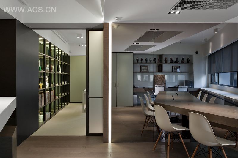 设计师的目标是将香港一间普通公寓改造成灵活的办公空间,集办公、娱乐为一体。考虑到客户多样化的兴趣爱好,设计师将空间划分为三个部分——公共空间、半私人空间和私人空间。