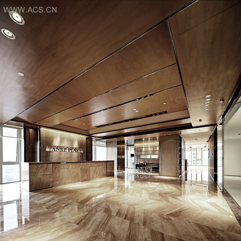 前厅雅致稳重,天花跌级造型与主幅的石材斜面墙,表现出力度感和效率感;开放办公室设备的摆设符合行动路线,营造舒适健康的办公环境;会议室保持主色调运用,冷暖相宜的灯光影调,点染室内的立体感。总经理办公室尽在实用明快而流畅的格局中,实用与展示性相结合的水吧区,简洁的吊顶,在变化中呼应安静清澈的自然感。