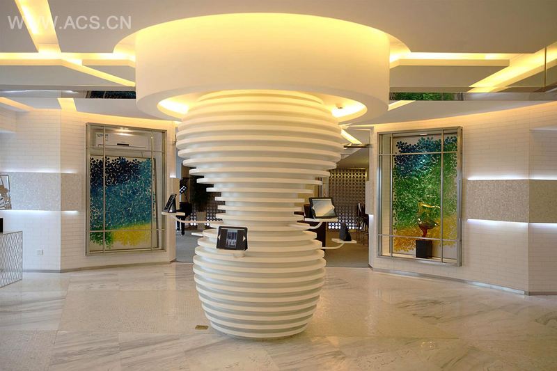 本案是国内自主男装设计品牌“POKPOKER”位于广州珠江国际轻纺城内的示范办公室。该品牌文化根源来自世人皆知的“POKER”(扑克)。在设计风格上“刚柔并济”始终贯穿其中。弧线与直线的对比与调和在每个空间都得到充分的体现。设计师还利用软硬装的紧密联系和细节的刻画,表现此空间的品牌形象——包括无处不在的扑克图案元素以及精细的实木扑克花雕刻墙。