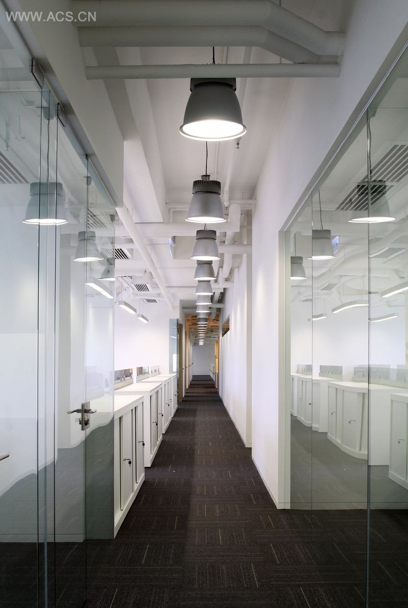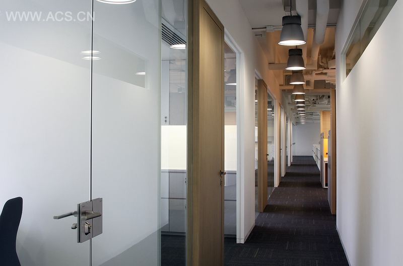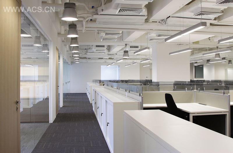 本案位于香港南部地区,落地式玻璃幕墙将美丽的景致引入室内。工作位置的设置保证了员工在工作的时候能享受到美丽的海边景致和公园景致,同时拥有良好的自然采光。落地式室内玻璃隔断与落地窗并行,将室外景致引入室内。白色的隔断和天花使得自然光可以流泻至室内空间,营造出和谐的氛围。再结合人工照明设置,保证了足够的照明,环保节能。