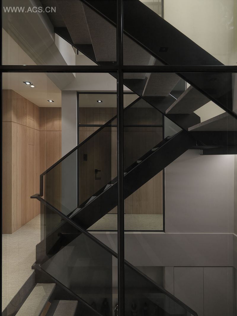 从上下楼层的结构里,侧写公私分明的生活意趣,透过垂直水平的线条,引申舒适开阔的视角关系,串连温暖舒适的情境氛围。