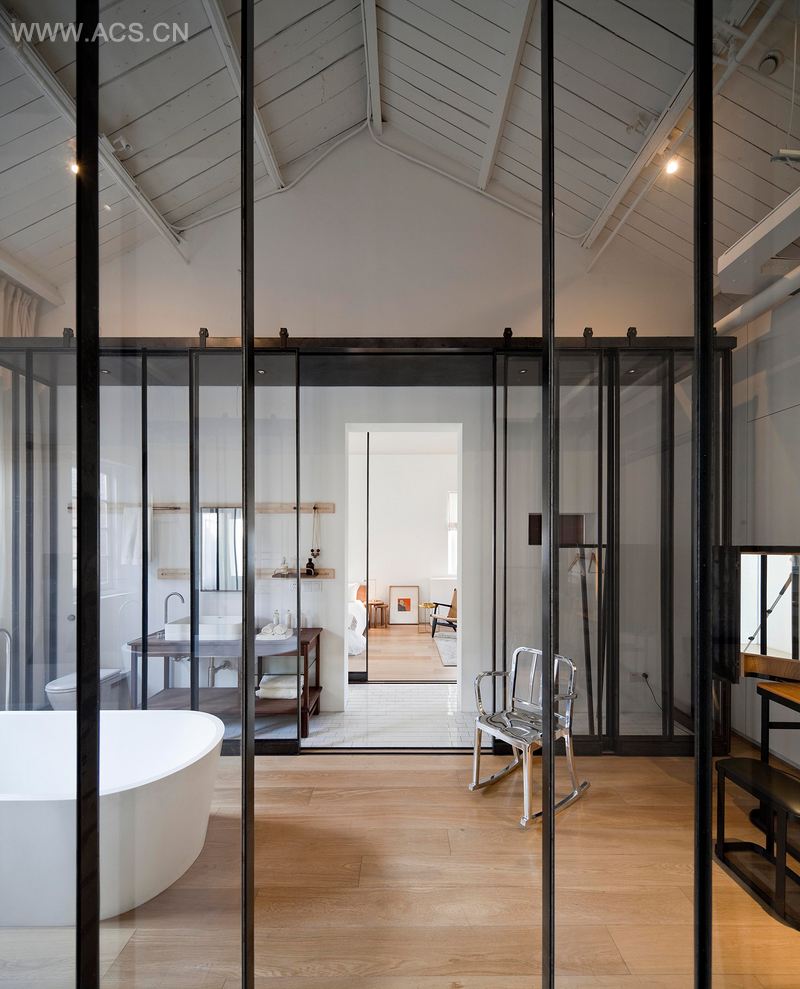 设计共和之家位于设计共和社区三楼。室内设计风格休闲而现代,满足空间基本功能的同时,装饰了许多具有个人风格的老物件和家具。公共空间非常像复式空间,宽敞开放,客人可以在各个空间中自由活动。小一些的更为私密的角落可供人们静坐,享受片刻私人空间。考虑到灵活性,空间中没有放置家具,因此未来可根据需要来配置不同的物件。最为特别的空间是私人区域,衣橱/浴室和卧室。设计师将浴室功能结合“储存概念”,设置在衣橱空间中。