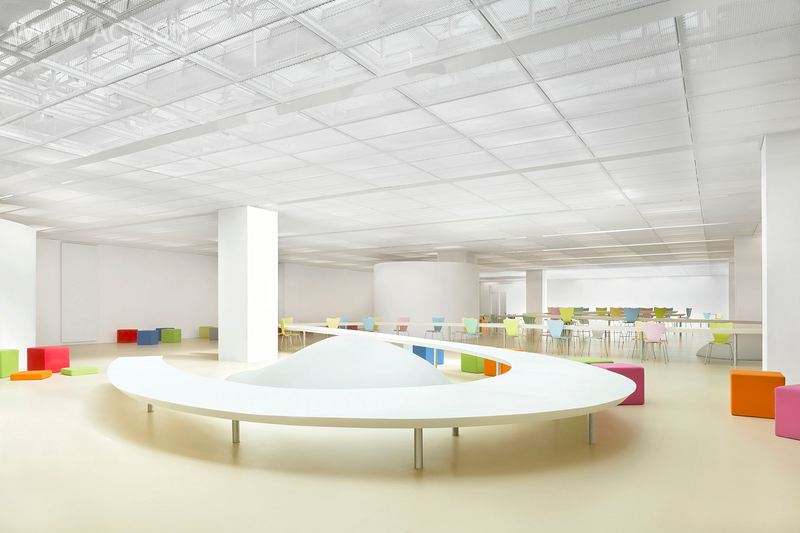 本案设计目标是将三栋建筑合为一体,创造出一个自由开放的空间,鼓励学生来此进行各种学习活动。原有的界限墙被移除,以加强空间之间的互动。