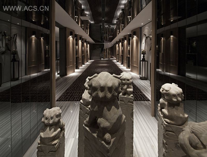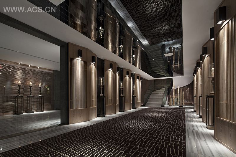 悦湾销售中心将亚洲元素植入现代建筑语系,将传统意境和现代风格对称运用,用现代设计来隐喻中国的传统。水曲柳屏风与深色石材的搭配既传统又流行,而且为空间营造出了充满魅力的对称感。使整个空间更具立体感,在美观之余,更增韵味,彰显东方的古典优雅气质。