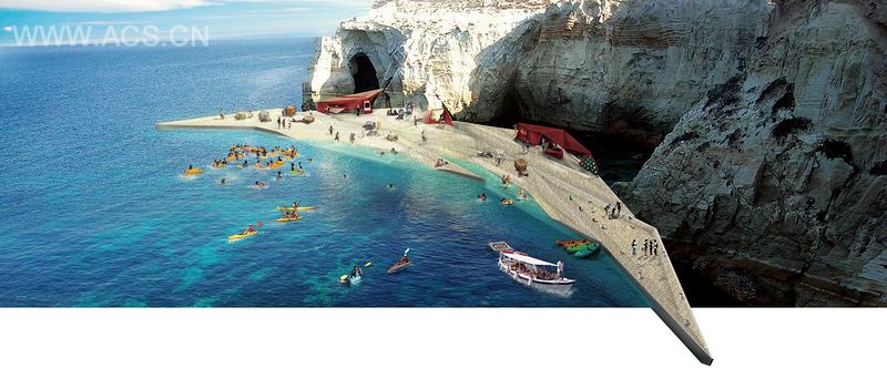 可移动的海滩是一个休憩保护地,将人们与这些绿岛联系起来。游客可以在不同的地点去学习、了解和体验。其将去往香港的7个岛屿,那些岛屿上没有可供游泳戏水的海滩,却有着自然绿色资源的巨大财富。我们可以发起生态旅游,召开针对这些地方的环保研讨会。可移动的海滩,可以变形为6个三角形单元。化身为玻璃海滩和展会,设计所用材料全部为回收利用材料。